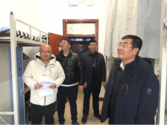 陈智、王昆带队逐一对各宿舍进行细致排查,过程中始终心系学生生活,亲切询问大家“居住是否舒心”“日常用水用电是否便利”,传递学校的关怀与牵挂。在用电安全方面,仔细核查宿舍内插座摆放位置情况,严肃提醒学生杜绝使用大功率违规电器、私拉乱接电线、卧床吸烟等危险行为;在寝室卫生方面,重点查看室内通风情况、物品摆放整齐度、卫生死角清理情况,详细询问学生日常卫生清洁频次与习惯,引导大家共同维护整洁有序的居住空间。