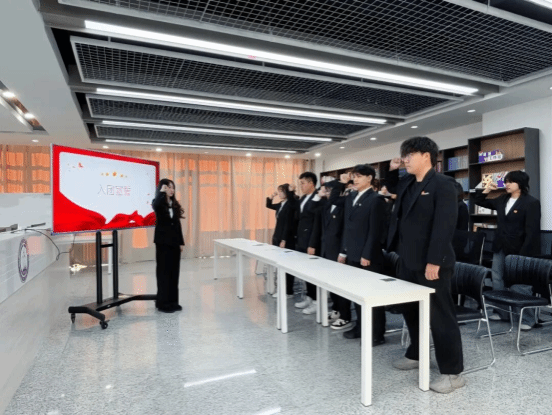 薪火相传跟党走,青春逐梦启新程。为进一步加强共青团组织建设,凝聚青年力量,引导我院广大青年学子坚定理想信念,11月27日,国际经贸学院分团委在一站式服务中心举行新团员入团仪式,学团办副主任张寒冰,辅导员李丹彤,学生党员许晋恺及21名新发展团员共同参加本次活动。