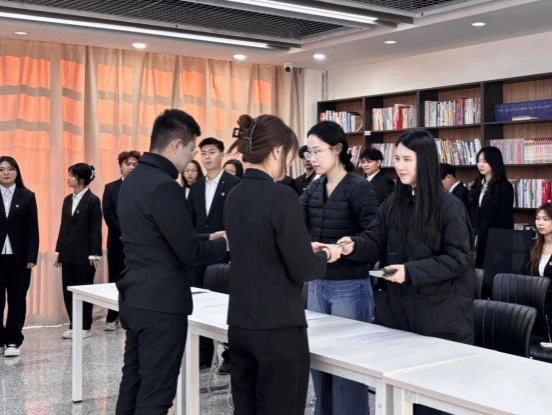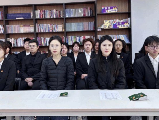 张寒冰与李丹彤为新团员们颁发团员证。这本沉甸甸的证书,不仅象征着团员身份的确认,更承载着组织的信任与时代的重托。我院新团员们将这一刻深深烙印心中,并誓言用未来的行动去书写不负期许的答案。