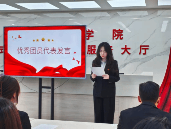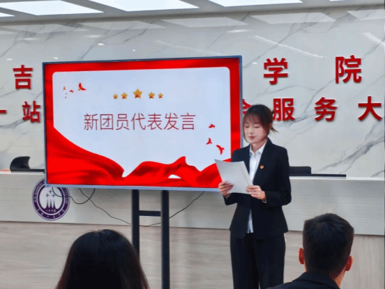 优秀团员代表昌小熙向新团员们表达了诚挚祝贺,她分享自己的成长感悟时提到,要始终铭记青年肩负的使命,将团章要求融入日常言行,主动履行团员职责,以更高标准规范自身学习与生活。同时,她鼓励新团员们以实际行动践行团员的责任与担当,在同学中发挥榜样作用,共同为共青团事业发展贡献青春力量。