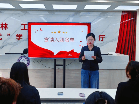 学团办副主任张寒冰宣读新团员名单。新团员经团支部推优、团课培训等环节严格选拔产生,每一个名字背后,都是我院青年对信仰的追求、对责任的坚守。
