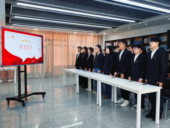 仪式在庄严的国歌声中拉开帷幕,全体师生庄严肃立,齐唱国歌,嘹亮的歌声表达着对祖国的无限热爱与忠诚。